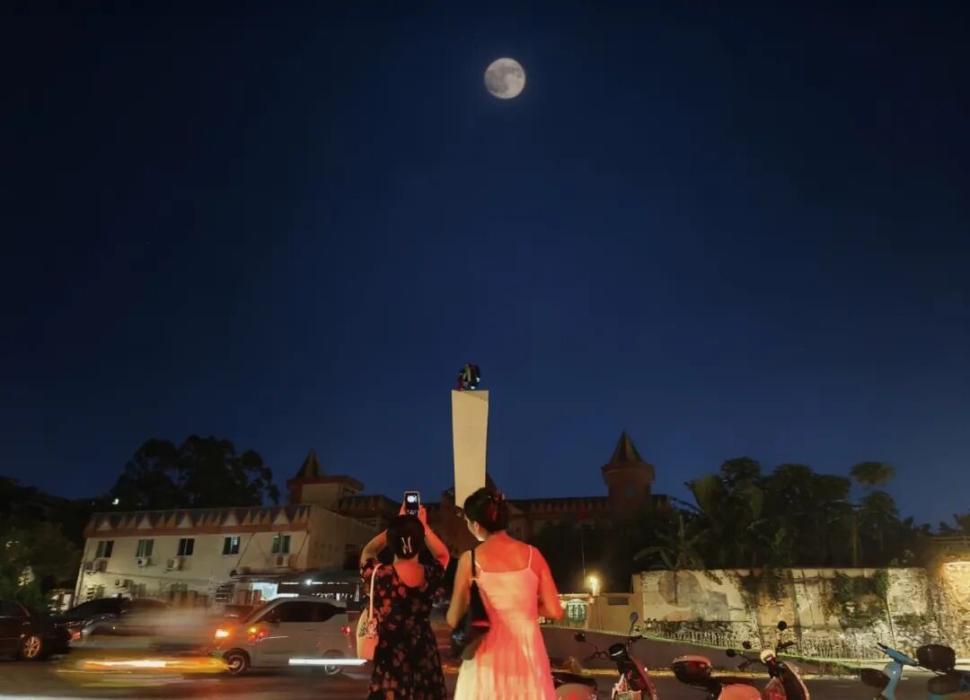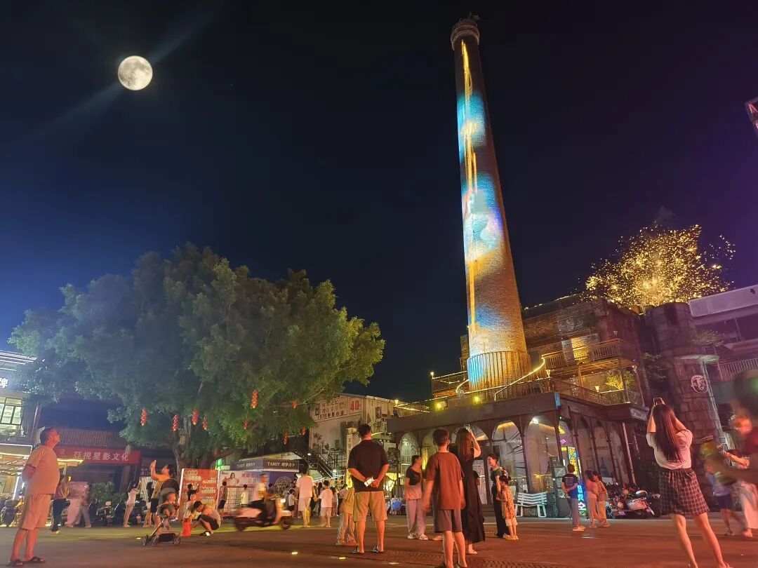 10月6日中秋之夜,增城市民纷纷走出家门,奔赴东门桥、1978电影小镇等地,共赴一场“月光与灯光”的浪漫之约。