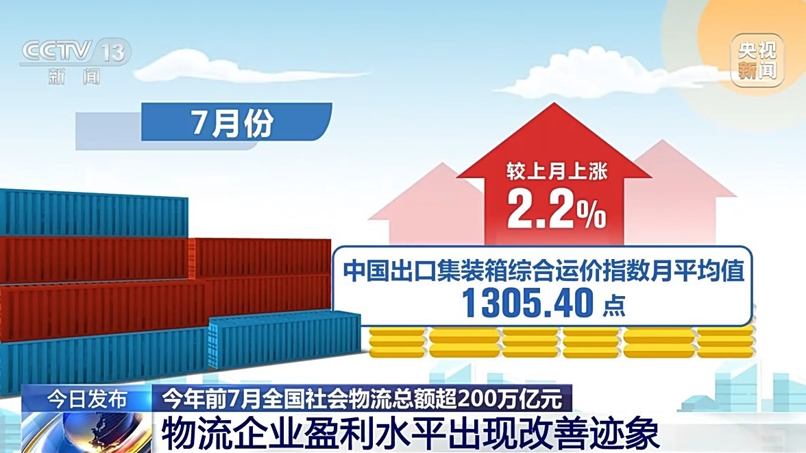 今年前7月全国社会物流总额超200万亿元